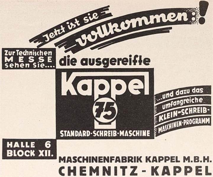 Werbeanzeige für Schreibmaschine Kappel monochrom