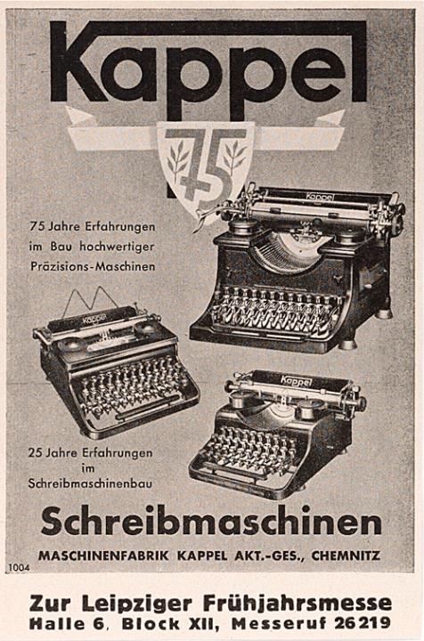 Werbeanzeige für Schreibmaschinen Kappel monochrom