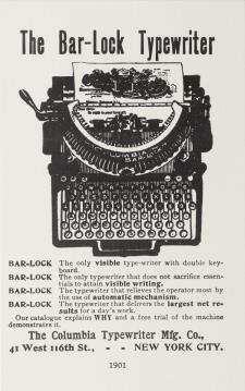Werbepostkarte, Nachdruck; Grafik, monochrom Rückseite: Schreibmaschine Bar-Lock, Werbetext, darunter die Jahreszahl 1901 Vorderseite nicht beschrieben
