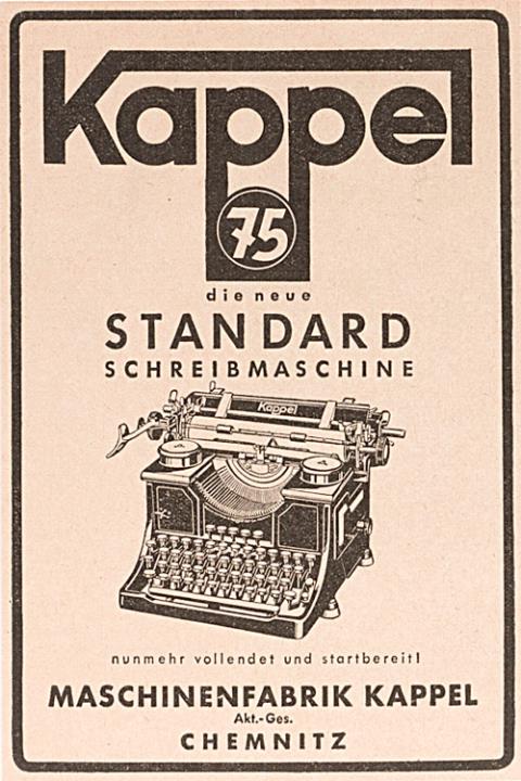 Werbeanzeige für Schreibmaschine Kappel monochrom