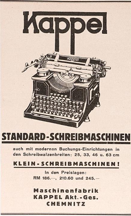Werbeanzeige für Schreibmaschinen Kappel monochrom