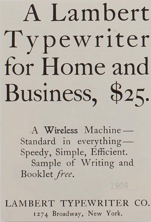 Werbeanzeige für Schreibmaschine Lambert monochrom