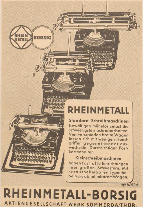 Werbeanzeige für Schreibmaschine Rheinmetall monochrom, zwei Exemplare