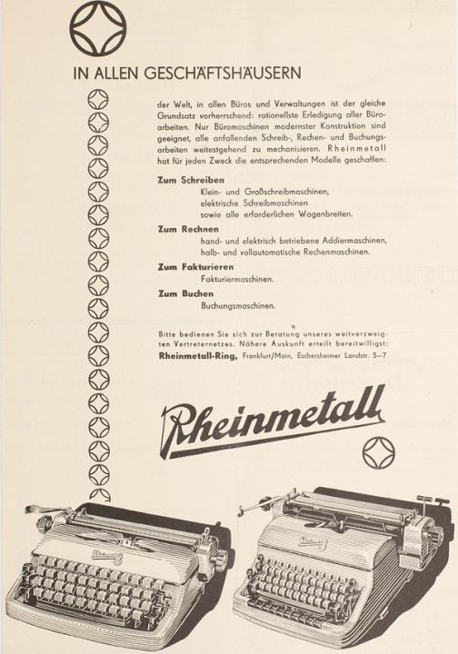 Werbeanzeige für Schreibmaschinen Rheinmetall monochrom