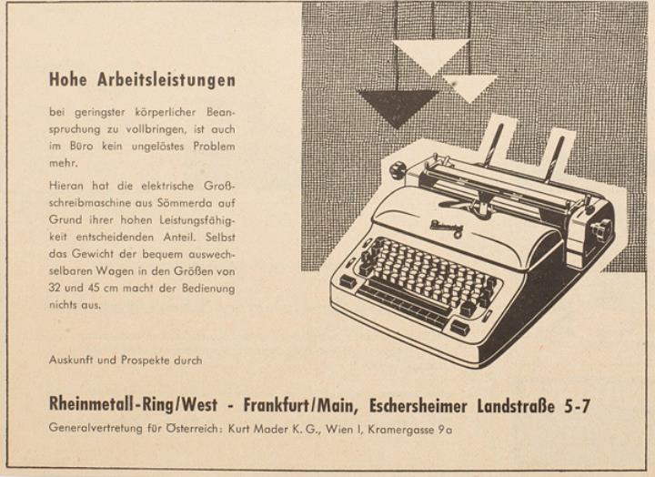 Werbeanzeige für Schreibmaschinen Rheinmetall monochrom