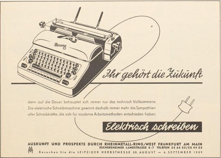 Werbeanzeige für elektrische Schreibmaschine Rheinmetall monochrom