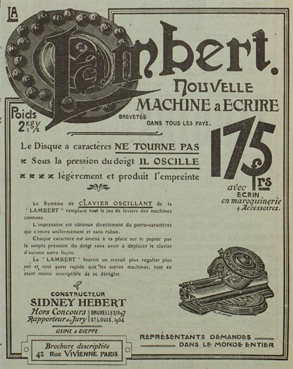 Werbeanzeige für Schreibmaschine Lambert monochrom