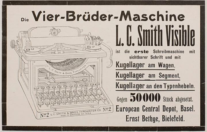 Werbeanzeige für Schreibmaschine L. C. Smith monochrom