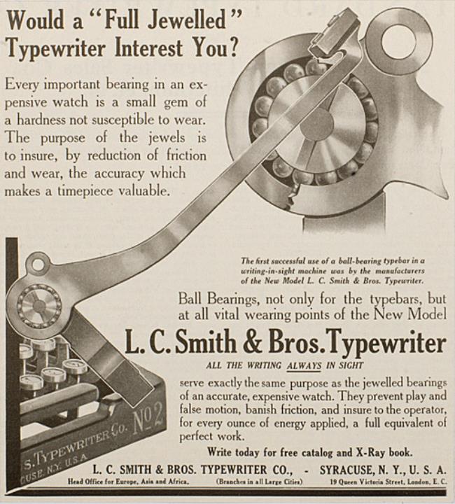 Werbeanzeige für Schreibmaschine L. C. Smith monochrom