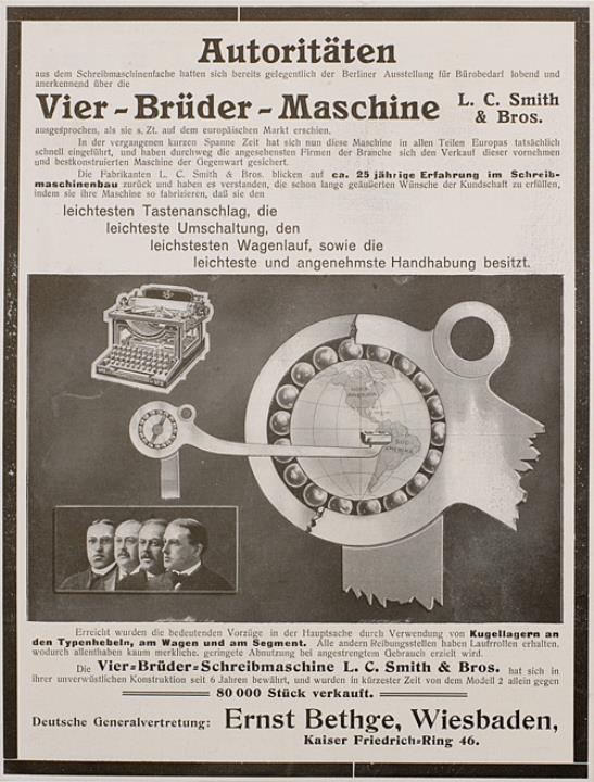 Werbeanzeige für Schreibmaschine L. C. Smith monochrom
