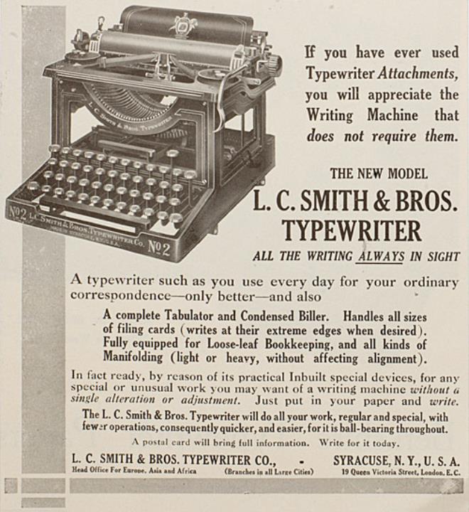 Werbeanzeige für Schreibmaschine L. C. Smith monochrom