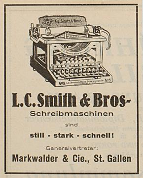 Werbeanzeige für Schreibmaschine L. C. Smith polychrom