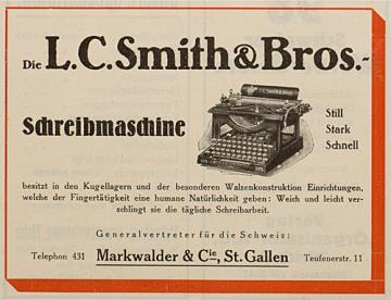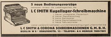 Werbeanzeige für Schreibmaschine L. C. Smith monochrom