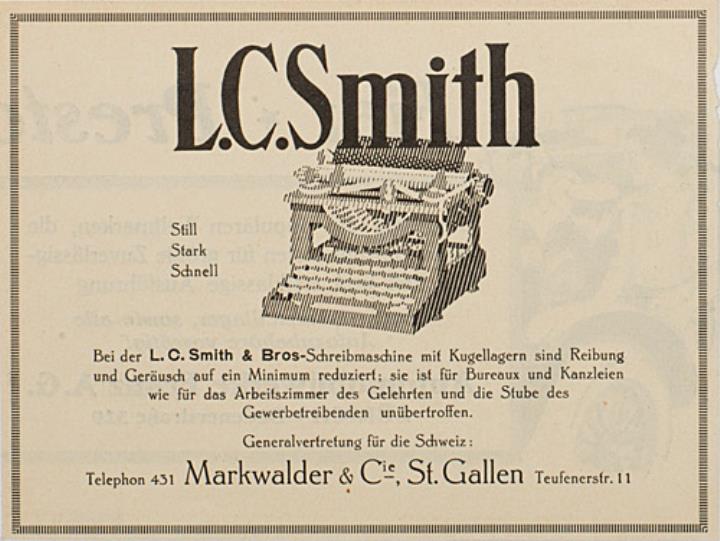 Werbeanzeige für Schreibmaschine L. C. Smith monochrom