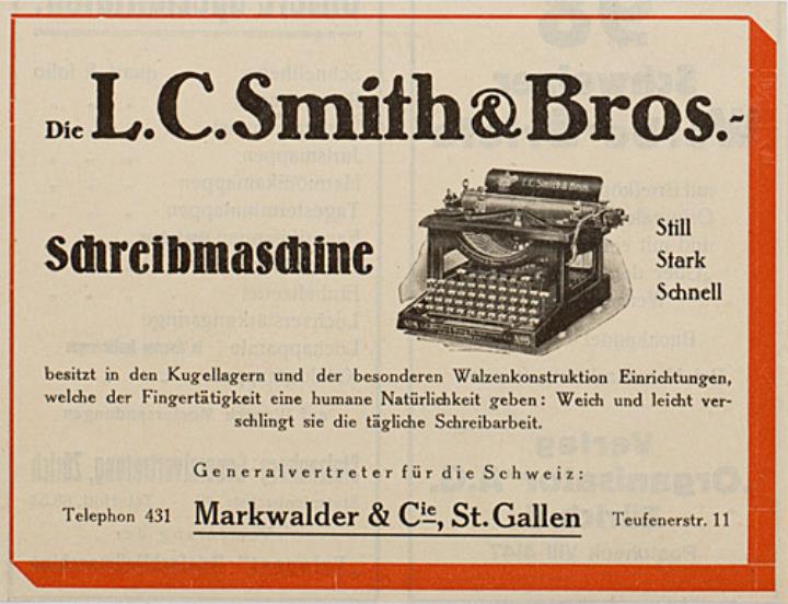 Werbeanzeige für Schreibmaschine L. C. Smith polychrom