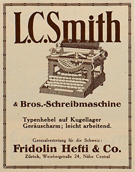 Werbeanzeige für Schreibmaschine L. C. Smith monochrom