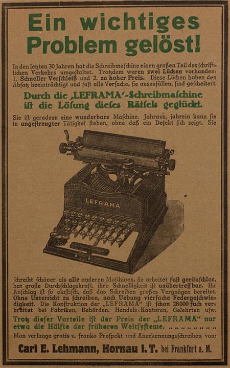 Werbeanzeige für Schreibmaschine Leframa polychrom