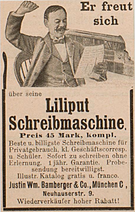 Werbeanzeige für Schreibmaschine Liliput monochrom