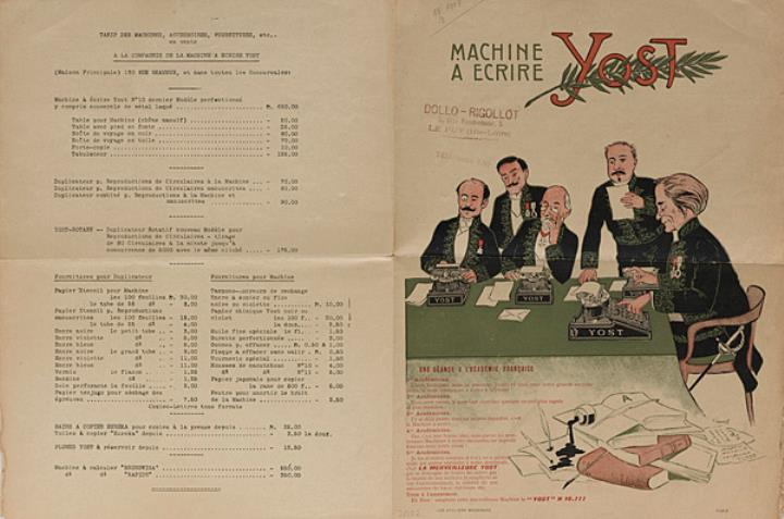Faltprospekt in französischer Sprache für Schreibmaschine Yost Grafik: F. Chapelet