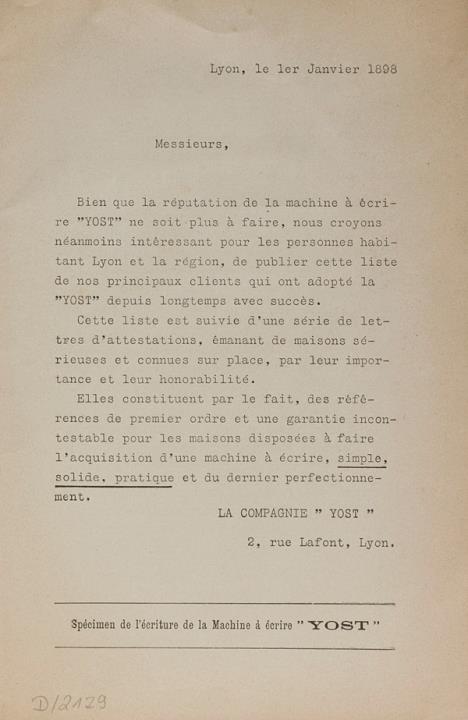 Next to literature on the history of technology, of the typewriter and the office, the Archive holds patent letters, textbooks and instruction manuals as well as historical postcards, letters, photographs and various kinds of advertising (leaflets and brochures, advertising stamps, newspaper ads, posters and signs, promotional gifts).