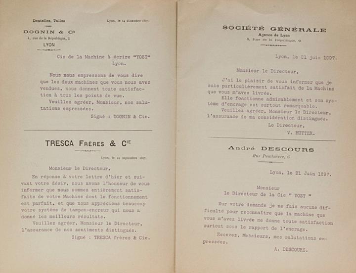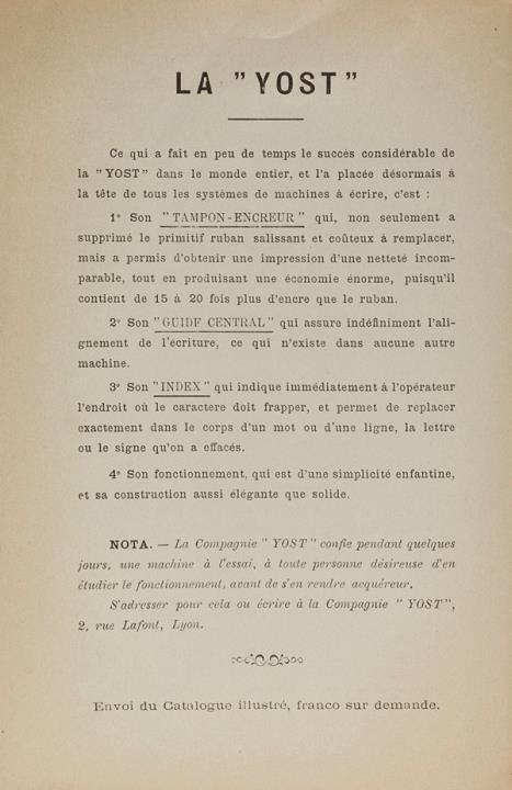 Prospekt mit Kundenrezensionen für Schreibmaschine Yost 4