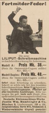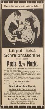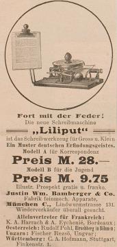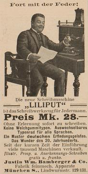 Werbeanzeige für Schreibmaschine Liliput monochrom