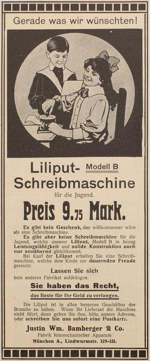 Werbeanzeige für Schreibmaschine Liliput B monochrom