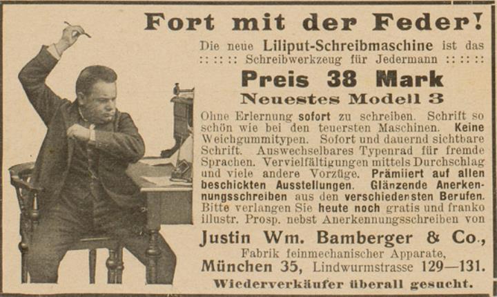 Fort mit der Feder! Die neue Liliput-Schreibmaschine