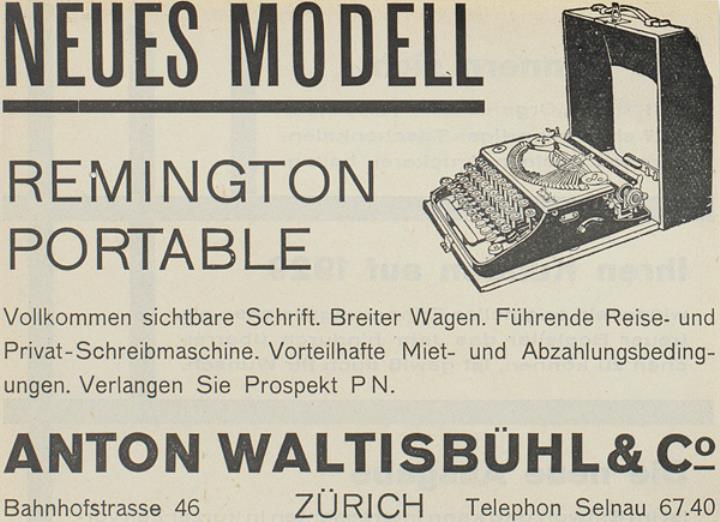 Werbeanzeige für tragbare Schreibmaschine Remington monochrom