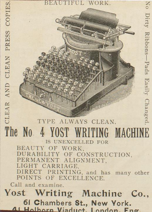 Werbeanzeige für Schreibmaschine Yost 4; auf Karton geklebt monochrom