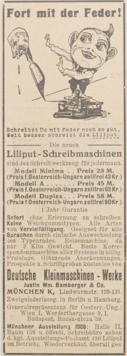 Werbeanzeige für Schreibmaschine Liliput monochrom