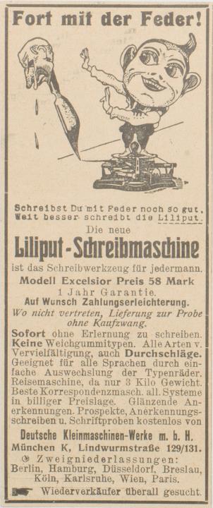 Werbeanzeige für Schreibmaschine Liliput monochrom