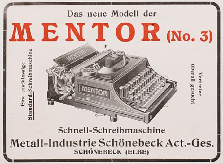 Werbeanzeige für Schreibmaschine Mentor monochrom