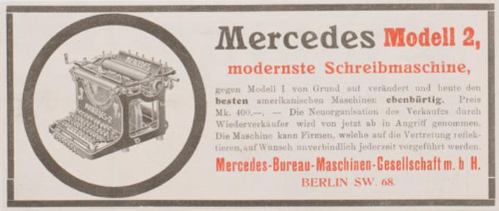 Werbeanzeige für Schreibmaschine Mercedes 2 polychrom