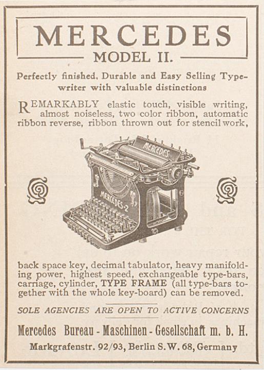 Werbeanzeige für Schreibmaschine Mercedes 2 monochrom