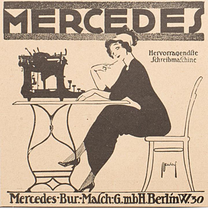 Werbeanzeige für Schreibmaschine Mercedes monochrom, drei Exemplare