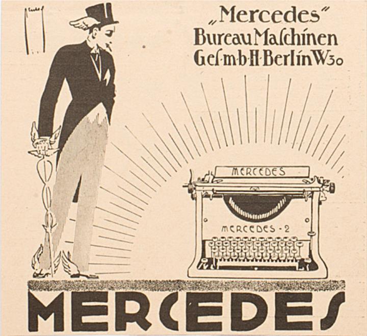 Werbeanzeige für Schreibmaschine Mercedes monochrom