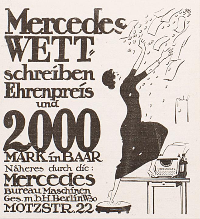 Werbeanzeige für Schreibmaschine Mercedes monochrom