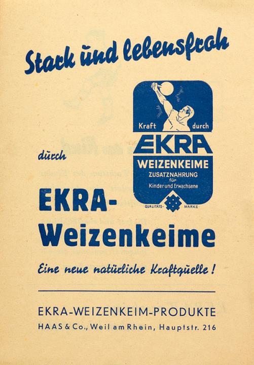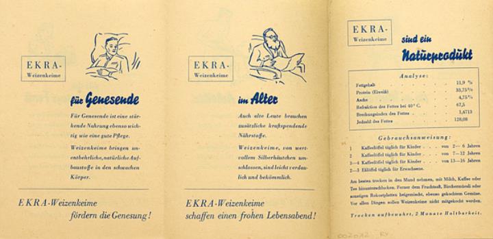 Faltprospekt für Ekra-Weizenkeim-Produkte der Firma Haas & Co., Weil am Rhein