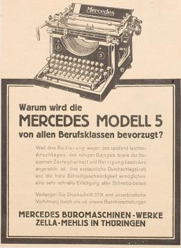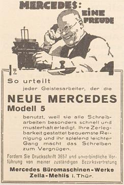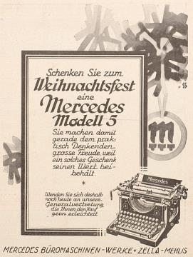 Werbeanzeige für Schreibmaschine Mercedes 5 monochrom