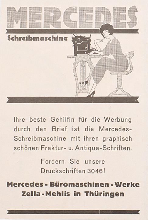 Werbeanzeige für Schreibmaschine Mercedes monochrom