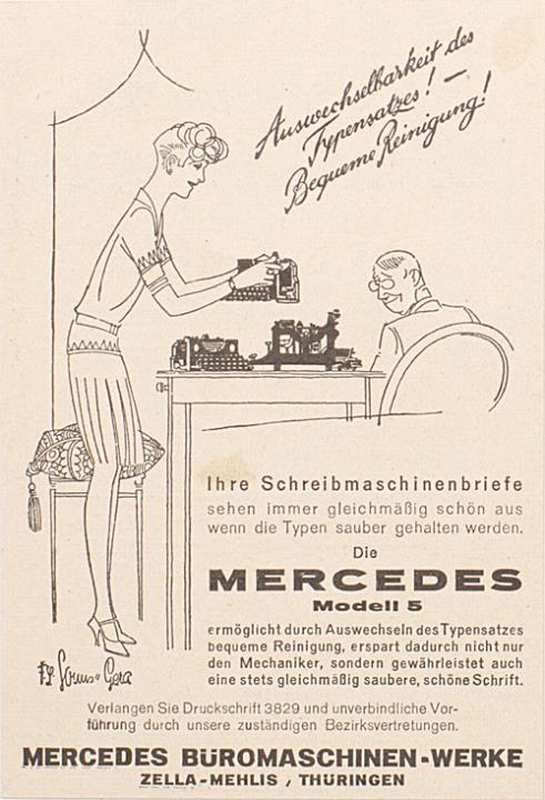 Werbeanzeige für Schreibmaschine Mercedes 5 monochrom