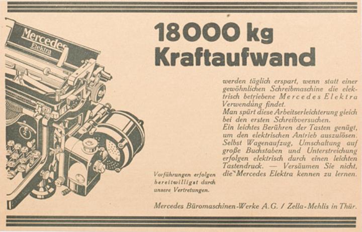 Werbeanzeige für Schreibmaschine Mercedes Elektra monochrom