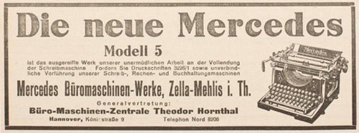 Werbeanzeige für Schreibmaschine Mercedes 5 monochrom