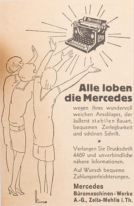 Werbeanzeige für Schreibmaschine Mercedes monochrom