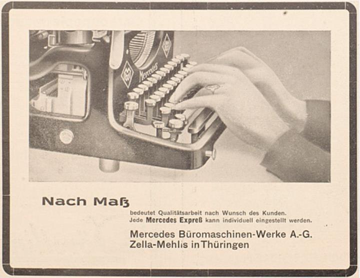 Werbeanzeige für Schreibmaschine Mercedes Express monochrom