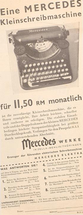 Eine Mercedes Kleinschreibmaschine für 11,50 RM monatlich