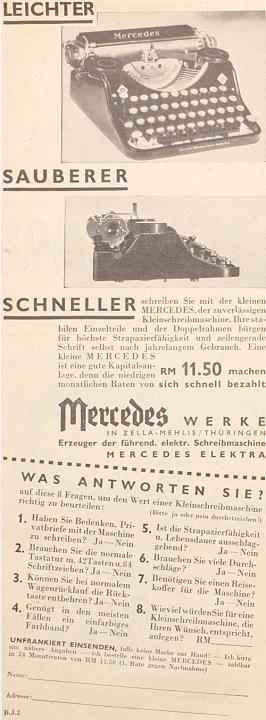 Werbeanzeige für Schreibmaschine Mercedes monochrom