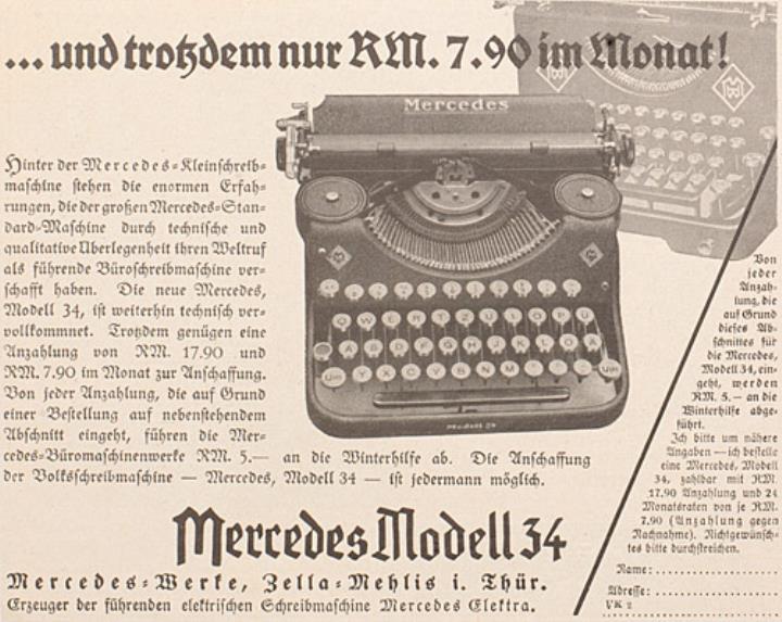 Werbeanzeige für Schreibmaschine Mercedes 34 monochrom