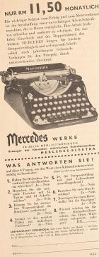 Werbeanzeige für Schreibmaschinen Mercedes monochrom